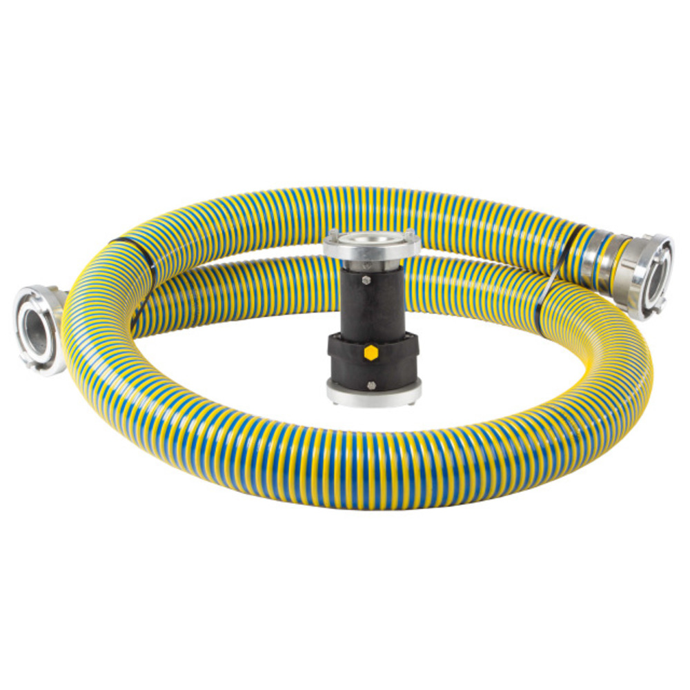 Das Zubehörpaket, passend zu der Schmutz- und Abwassertauchpumpe ALPSEE, bestehend aus einer Rückschlagklappe zur Rückflussverhinderung, sowie einem formstabilen PVC-Spiralschlauch als Druckschlauch.